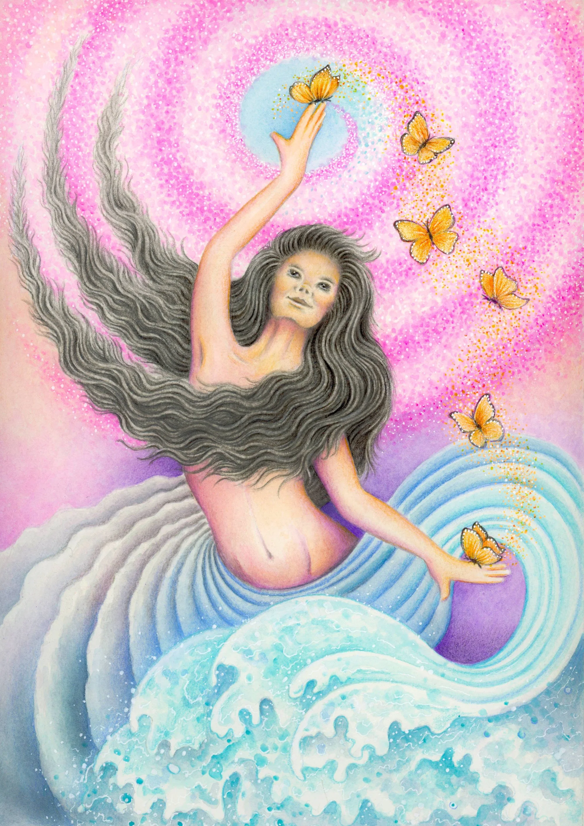 All paintings are a result of water-based mixed media painting by hand. They are created using traditional watercolour paints, gouache, watercolour pencils and acrylic.